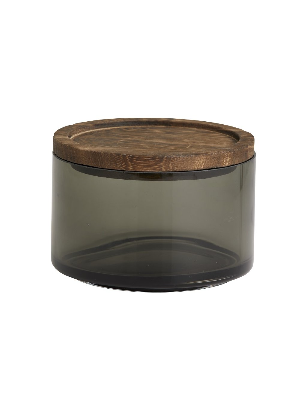 - Materiál: Kouřové sklo a přírodní dřevěné víko, které zajišťuje dlouhou životnost.
