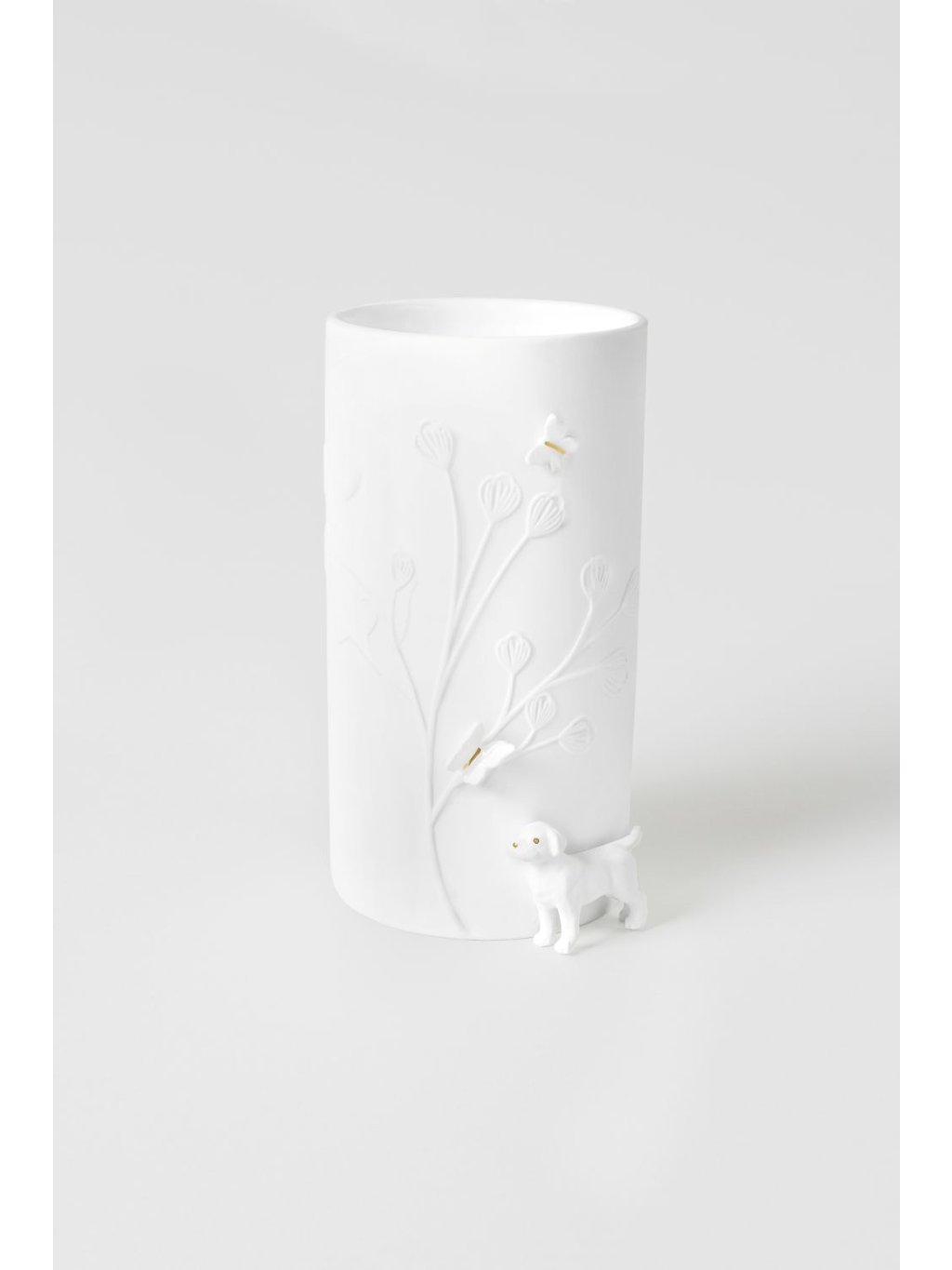 ✔ Matný porcelán s jemným reliéfem – decentní květinový vzor dodává váze romantický nádech.