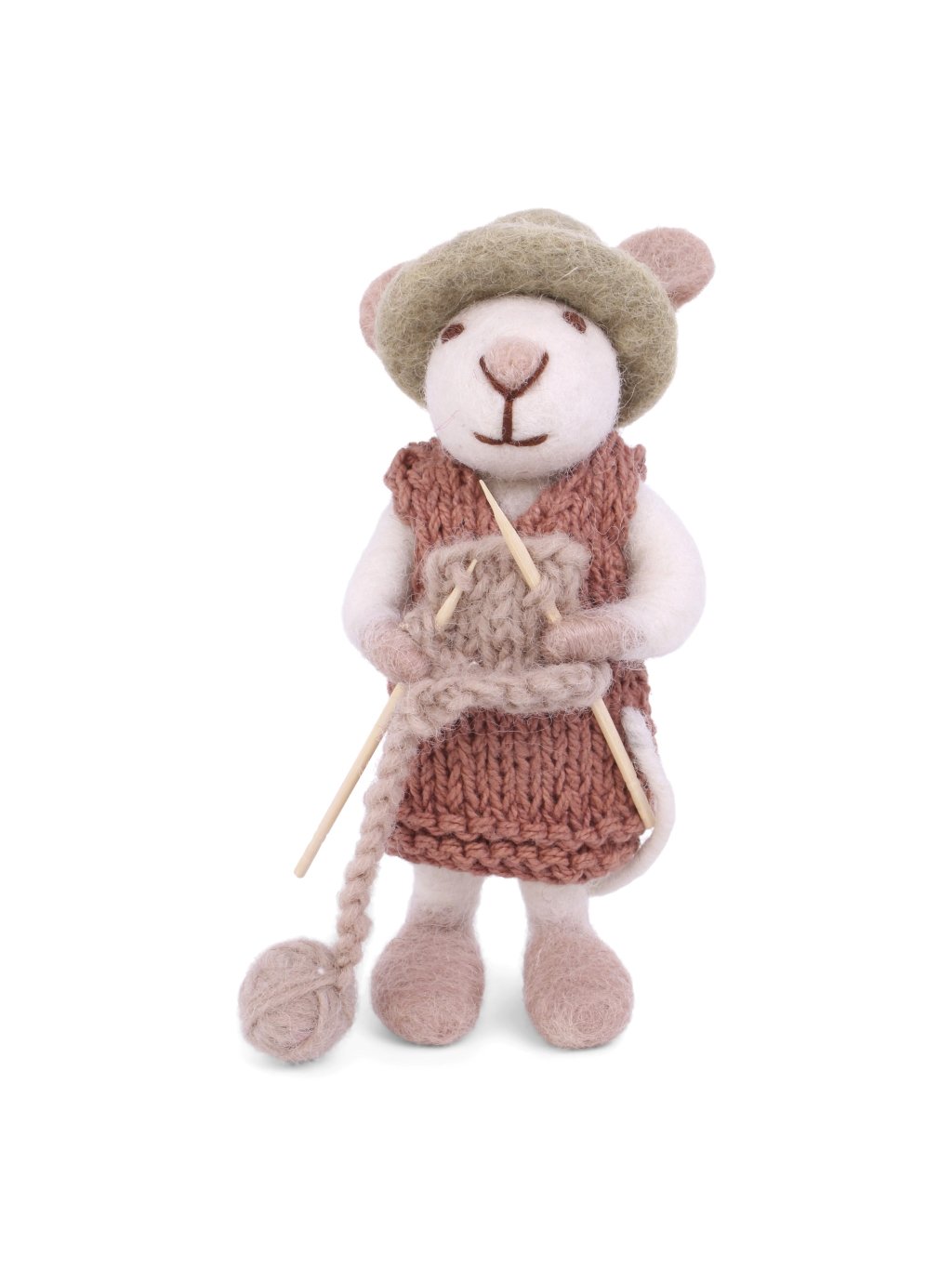 Motiv myšky s pletacími jehlicemi a klubíčkem