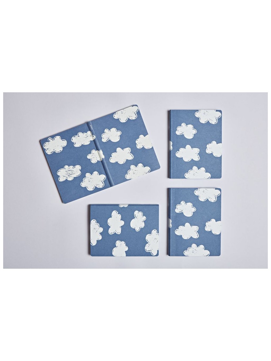originální design s motivem bílých obláčků na modrém pozadí