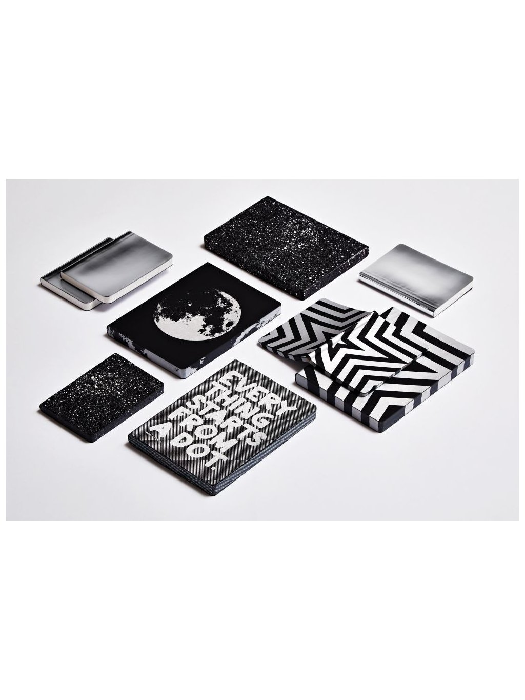 256 číslovaných stran s jemnou světle šedou tečkovanou mřížkou (3,5 mm)