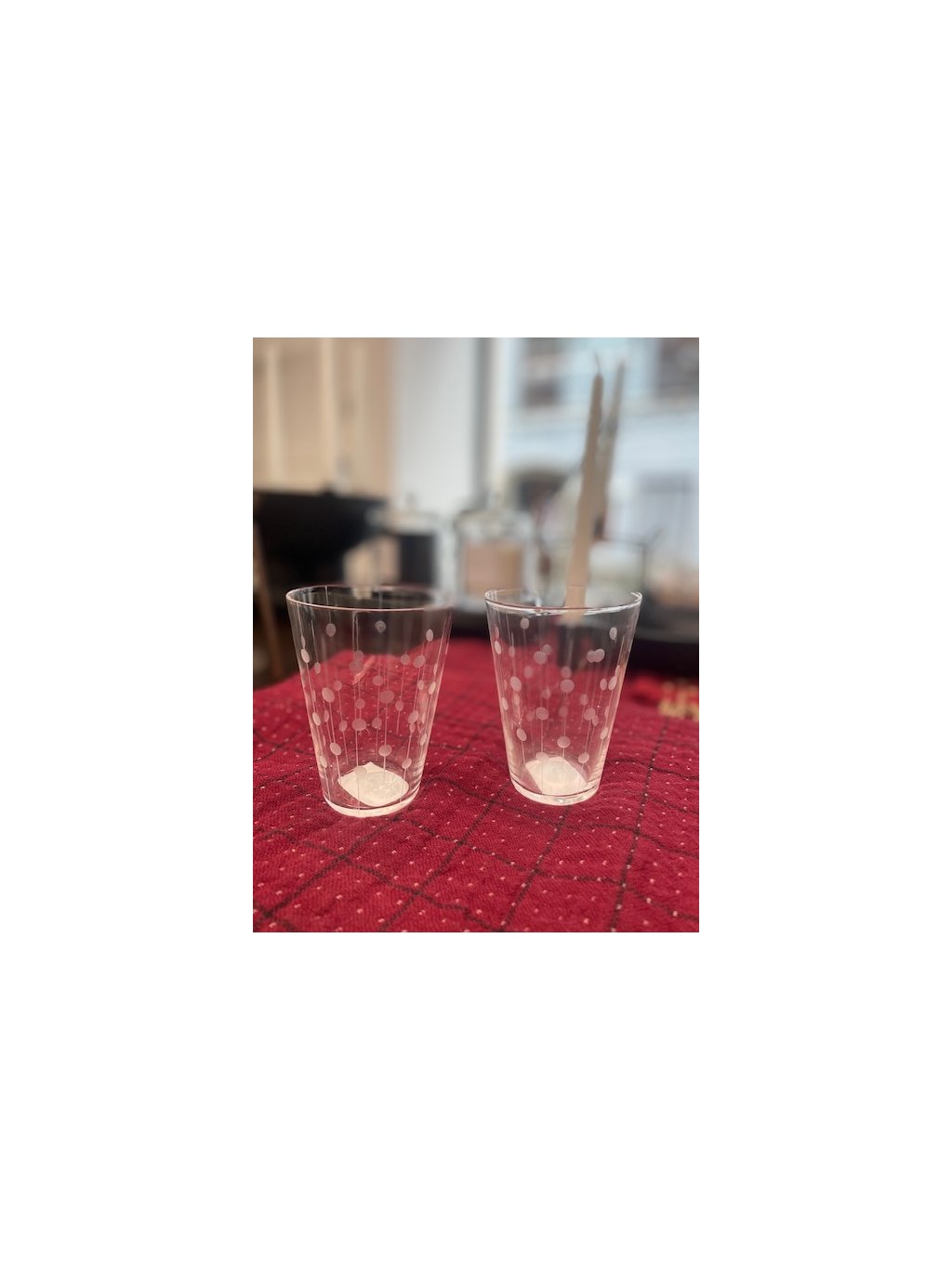- Elegantní dekor puntíků: Jemné vybroušené puntíky dodávají sklenici hravost a zvyšují její estetickou hodnotu.