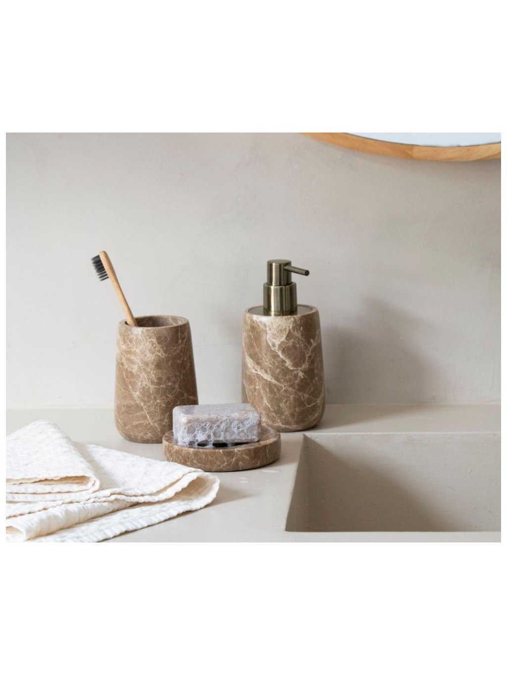sada obsahuje kelímek, mýdlenku a dávkovač na tekuté mýdlo