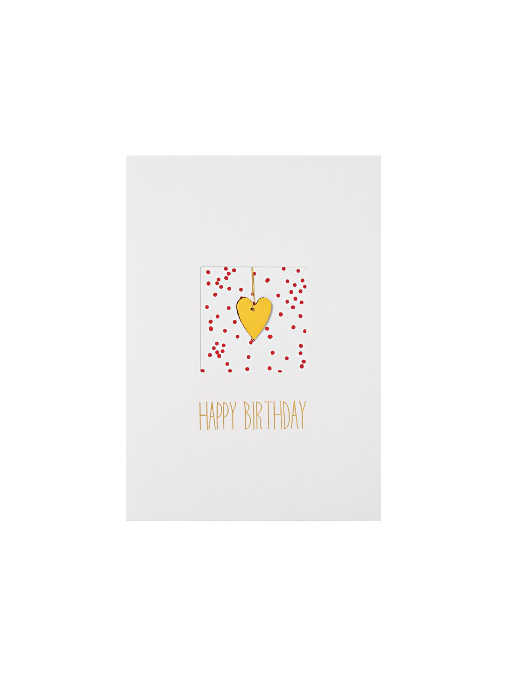 - Stylový design: Zlaté srdce zavěšené na jemném pozadí s červenými puntíky dodává přání hravý a elegantní nádech.