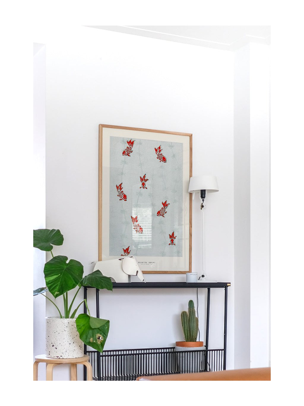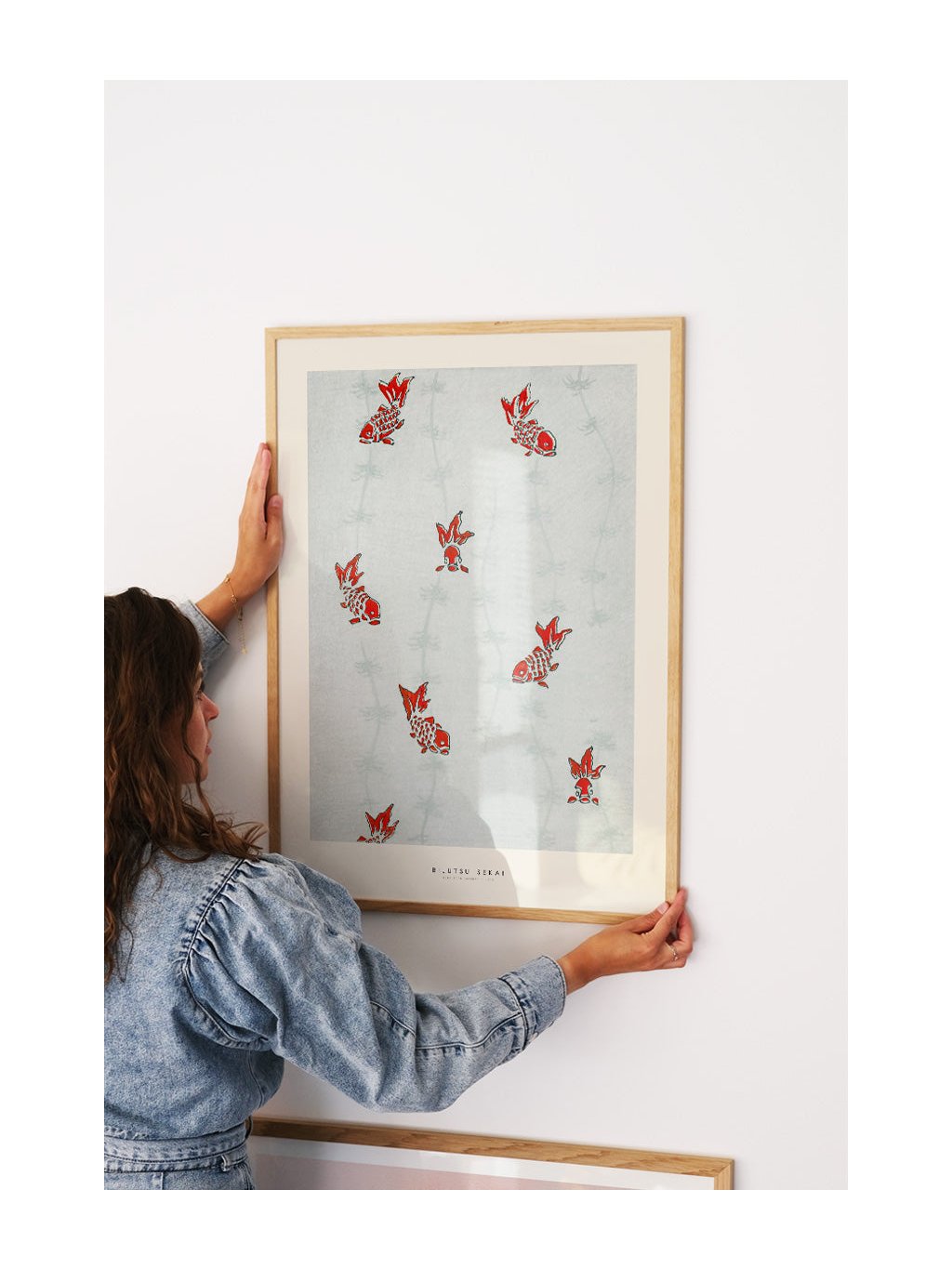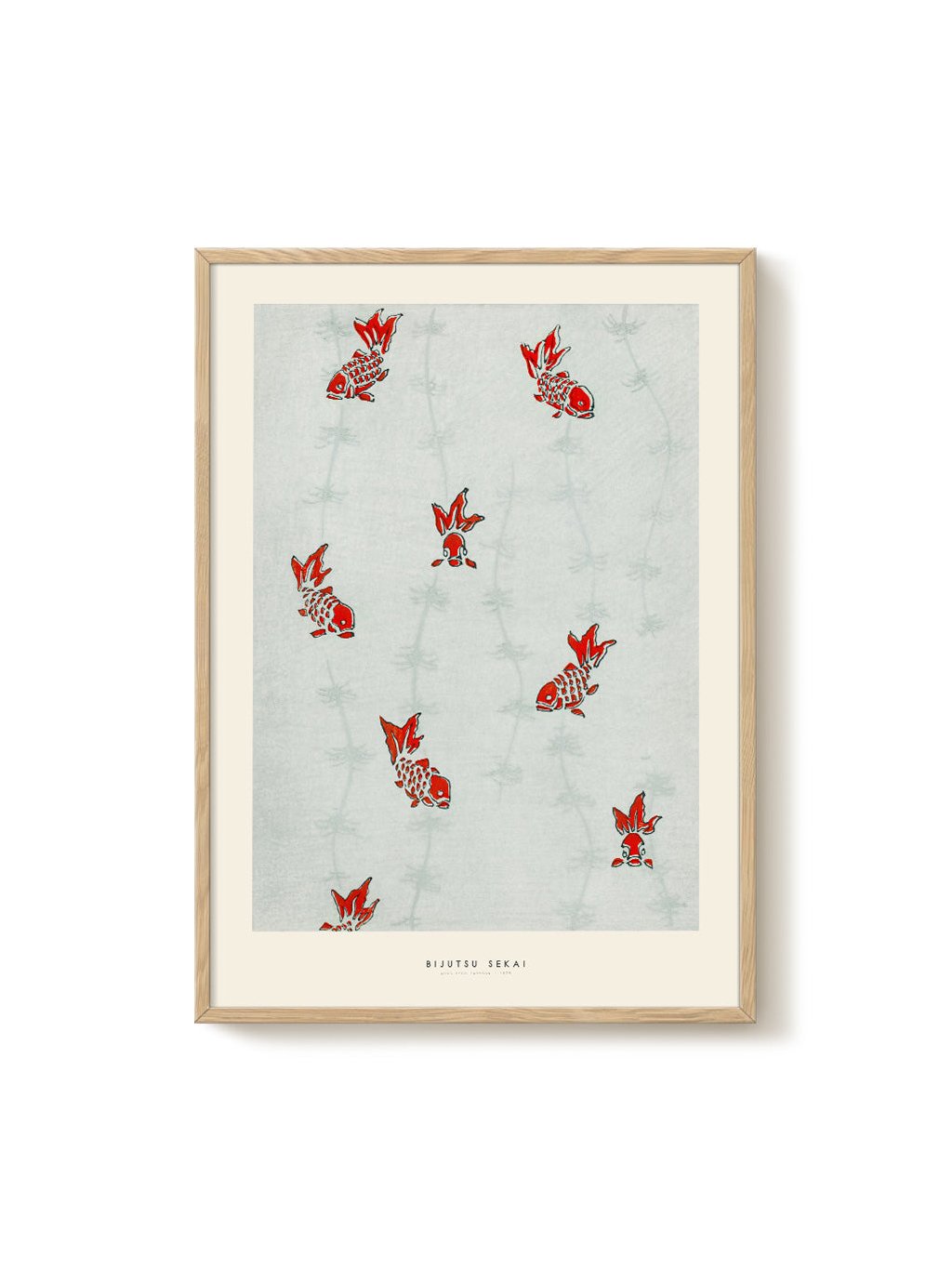 ✔ Výrazný kontrast – sytě červené rybky vynikají na jemném pozadí.