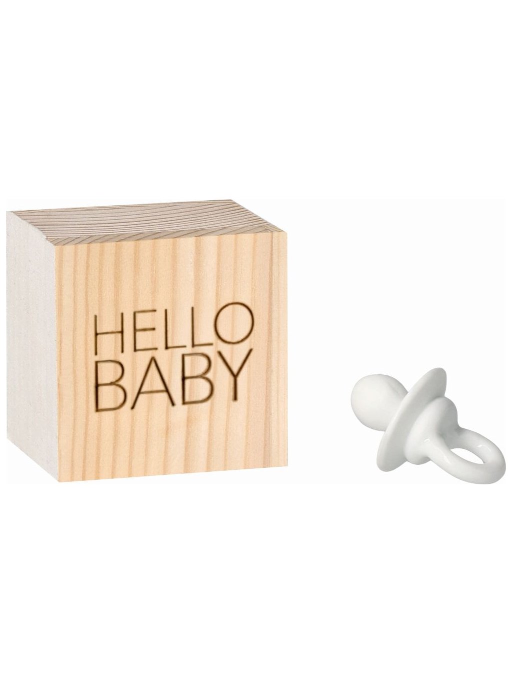 Přírodní dřevěná krabička s gravírovaným nápisem Hello Baby