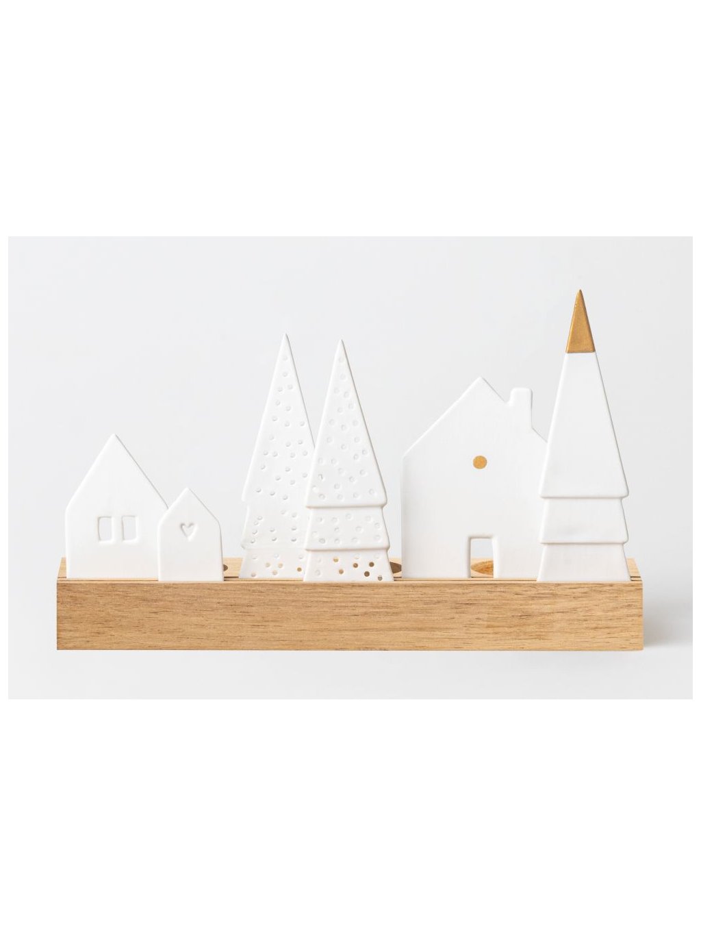 elegantní porcelánová dekorace v podobě zasněžené vesničky